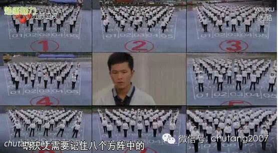 其次,胡庆文在3分钟的时间里,要依次从每个方阵中,找出与5号方阵《小苹果》相同的舞蹈动作的舞者,节目组每个方阵都按照1到81 的序号位置进行了编号,选手只要报出每个方阵的规定动作的舞者编号即可,编号可以转为熟悉的图像。